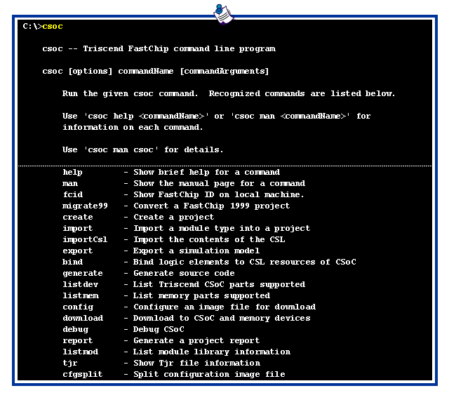 For a quick summary of a 'csoc' command, type the following at the command prompt: