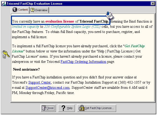 If you see either of the following messages, then your FastChip installation is not yet licensed and is operating in evaluation mode.