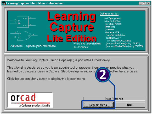 Edition, or eCapture. You need to invoke OrCAD to use the tutorial.