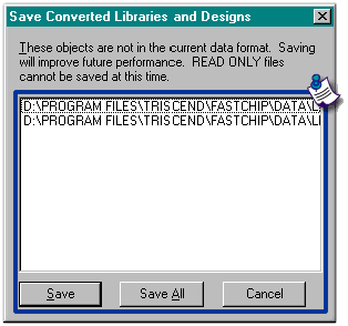 dialog asking if you want to save any open Triscend symbol libraries